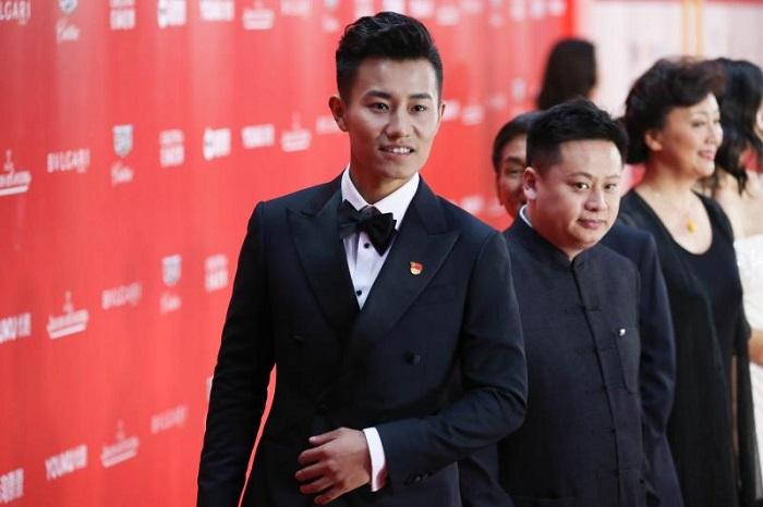 (身为党员的潘兴源佩戴党徽走上电影节红毯)