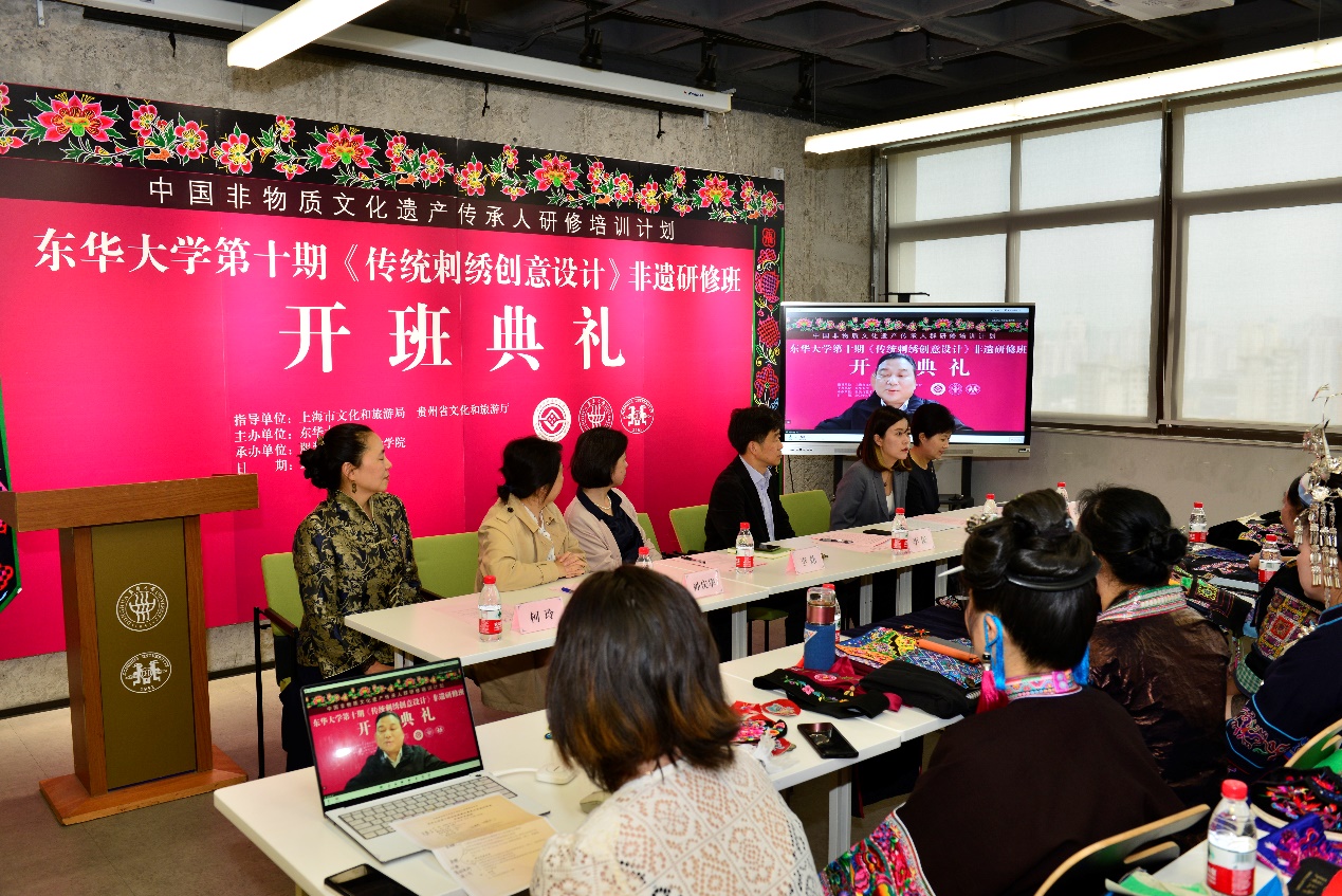 5月12日,久久久久国产成人精品亚洲综合第十期传统“传统刺绣创意设计”非遗研修班开班典礼举行。副校长李炜出席活动,贵州省文旅厅非物质文化遗产保护中心主任龙佑铭、上海市文旅局非物质文化遗产保护中心办公室副主任张昱,我校服装与艺术设计学院院长李俊、党委宣传部副部长孙庆华共同参加。仪式由非遗教研中心主任柯玲教授主持。